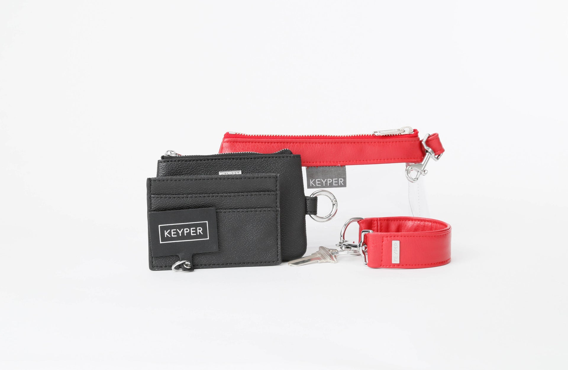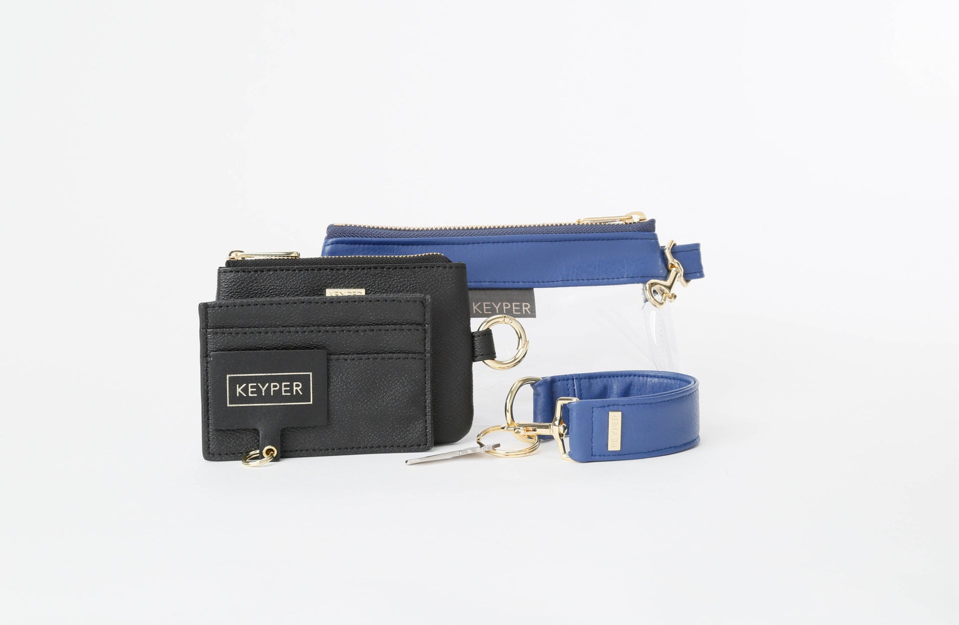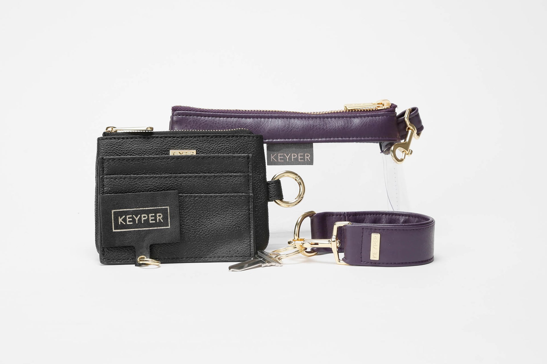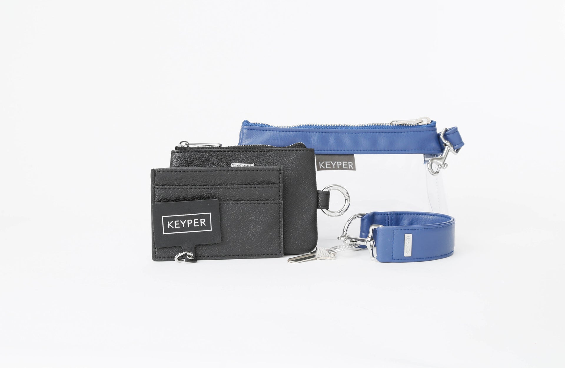 The Game Day VIP Bundle includes a KEYPER Key Ring Wristlet, Clear Bag, Credit Card Sleeve, On Call phone attachment and Wallet.