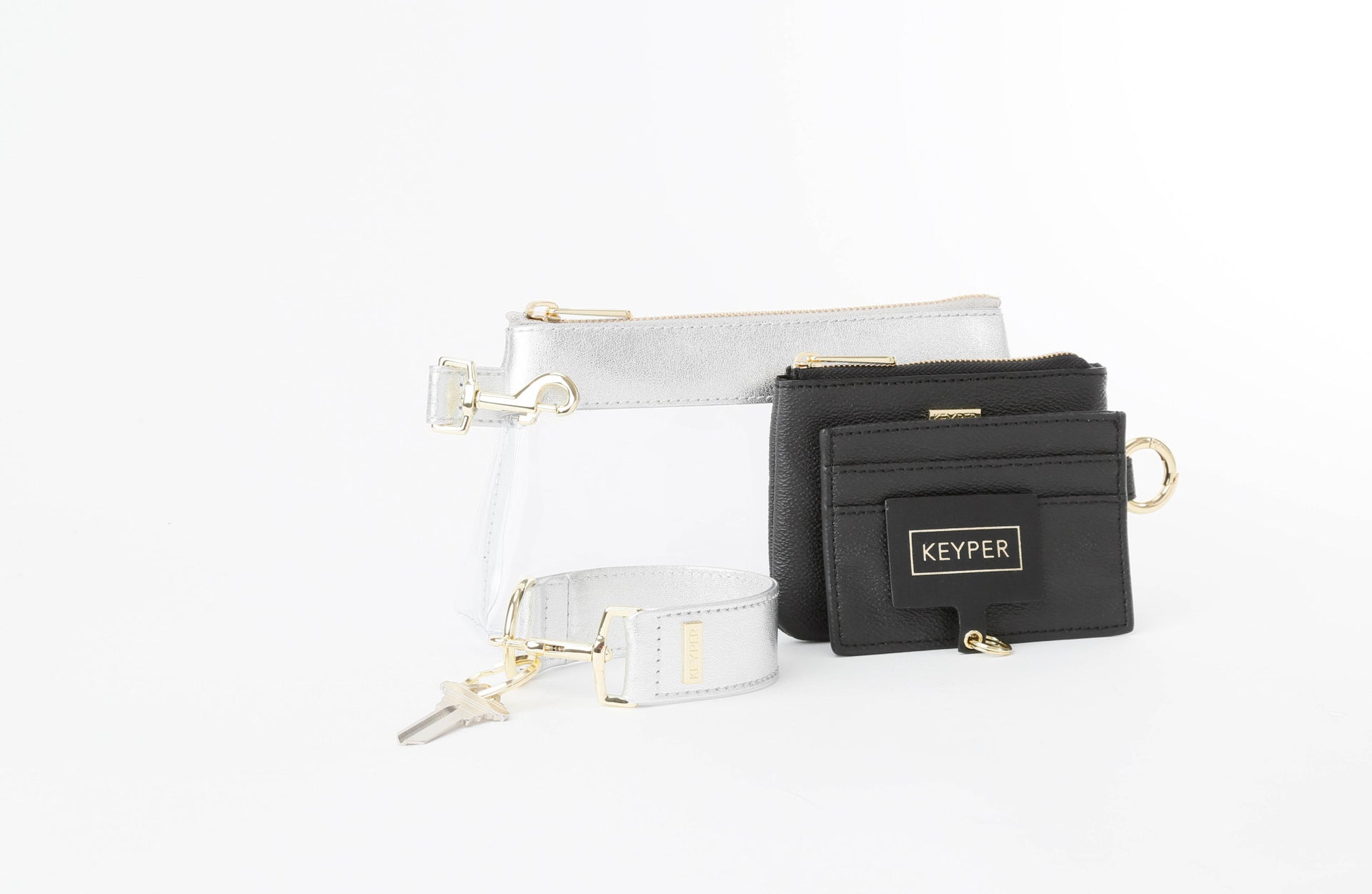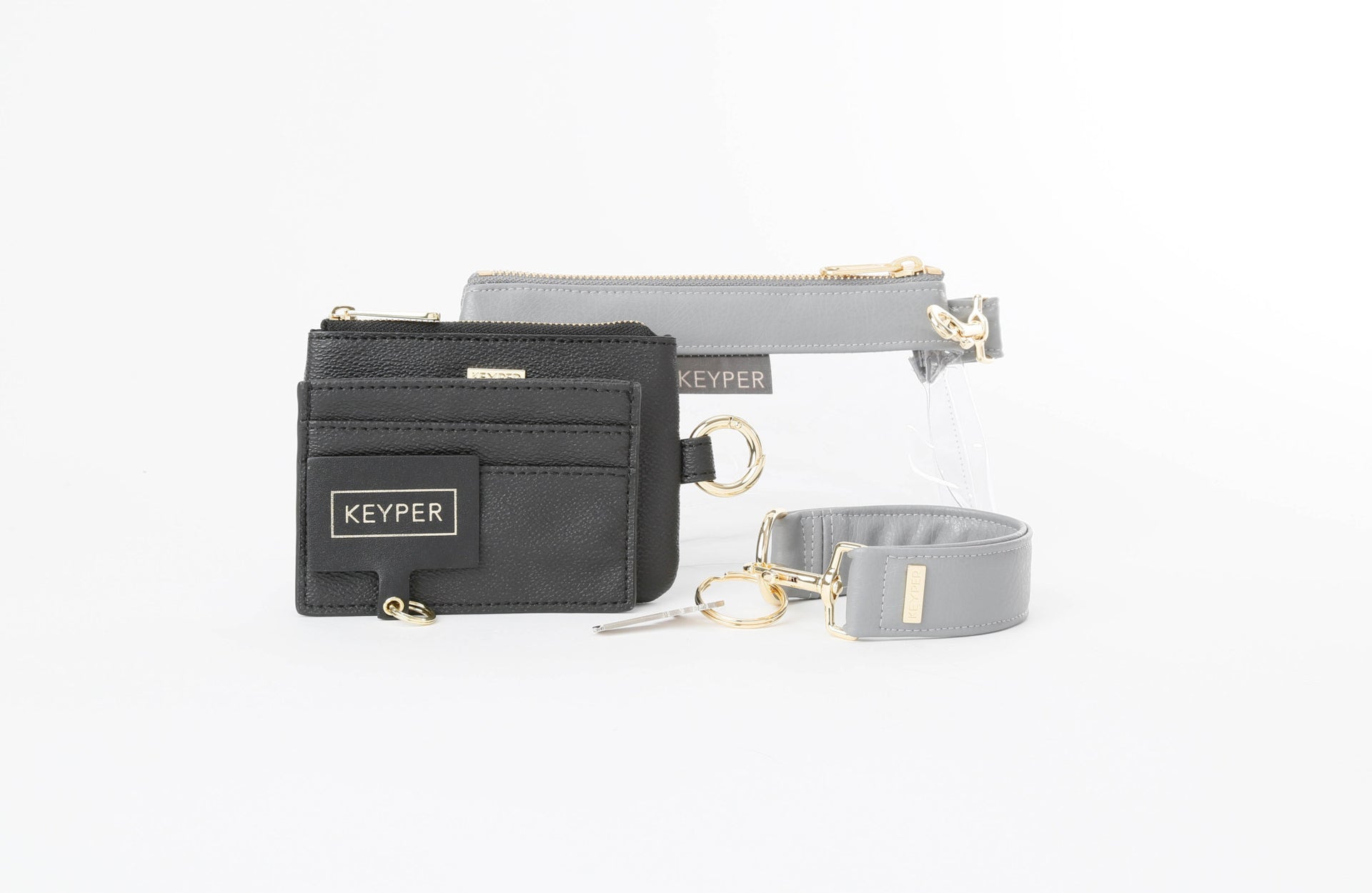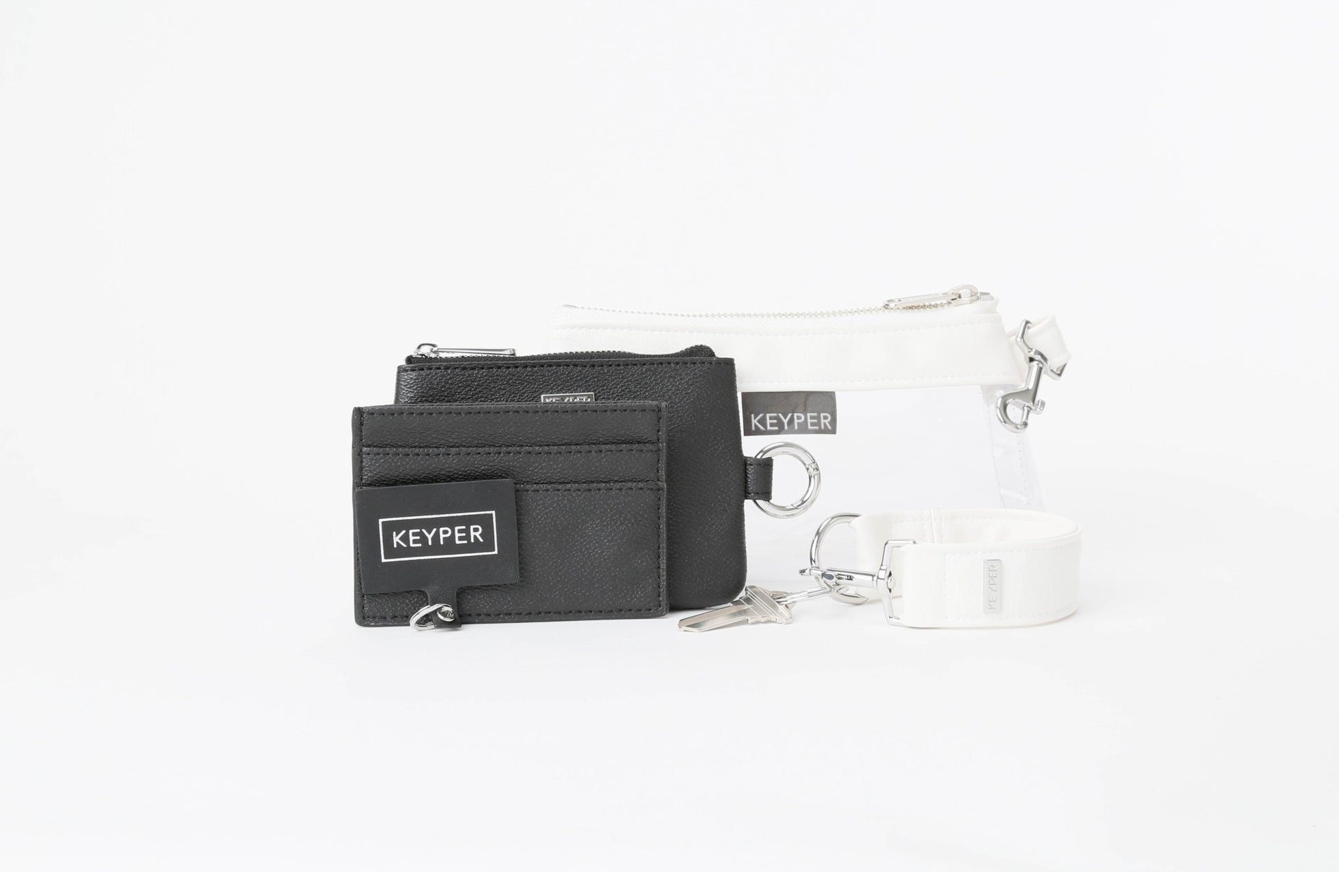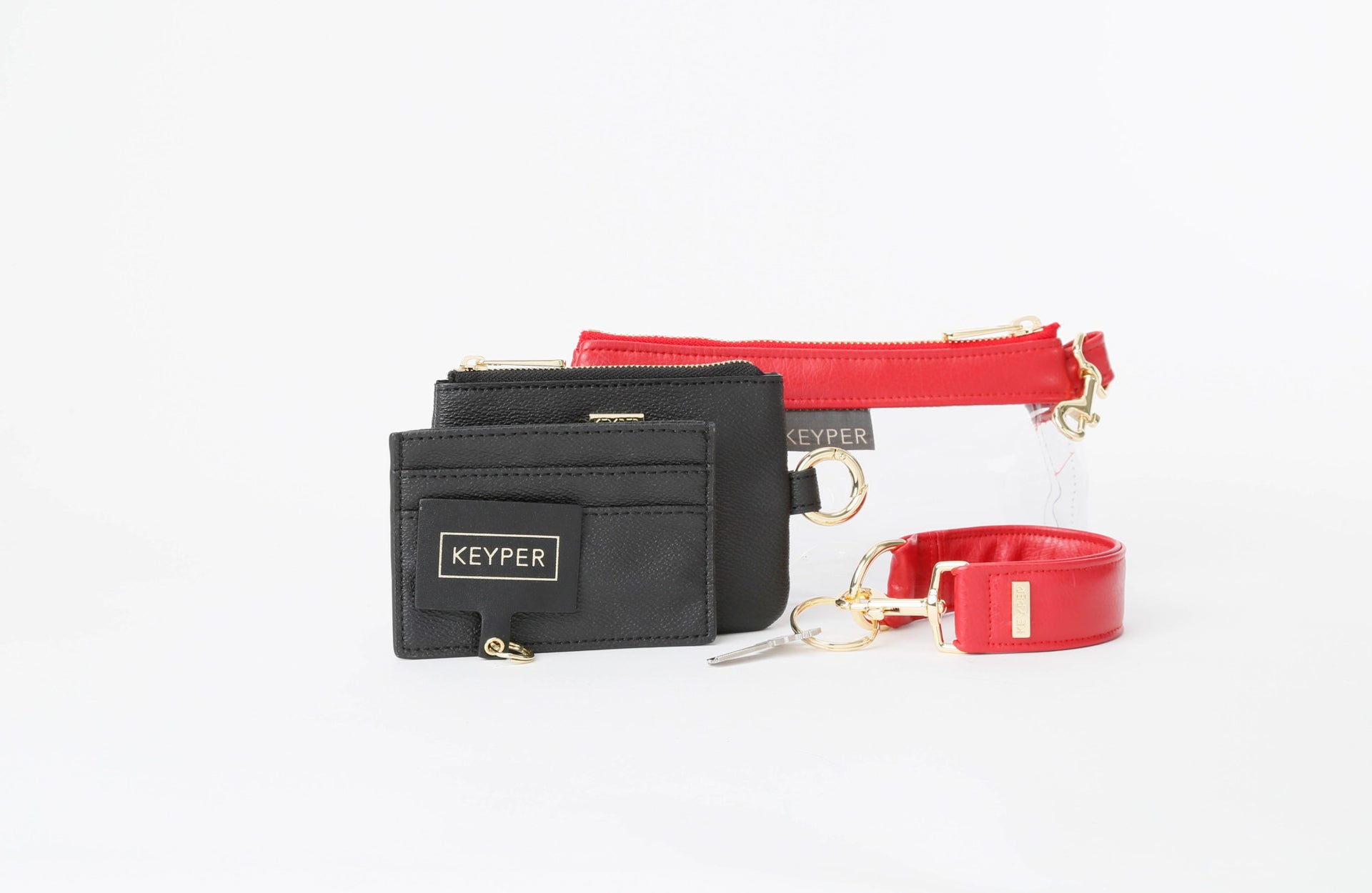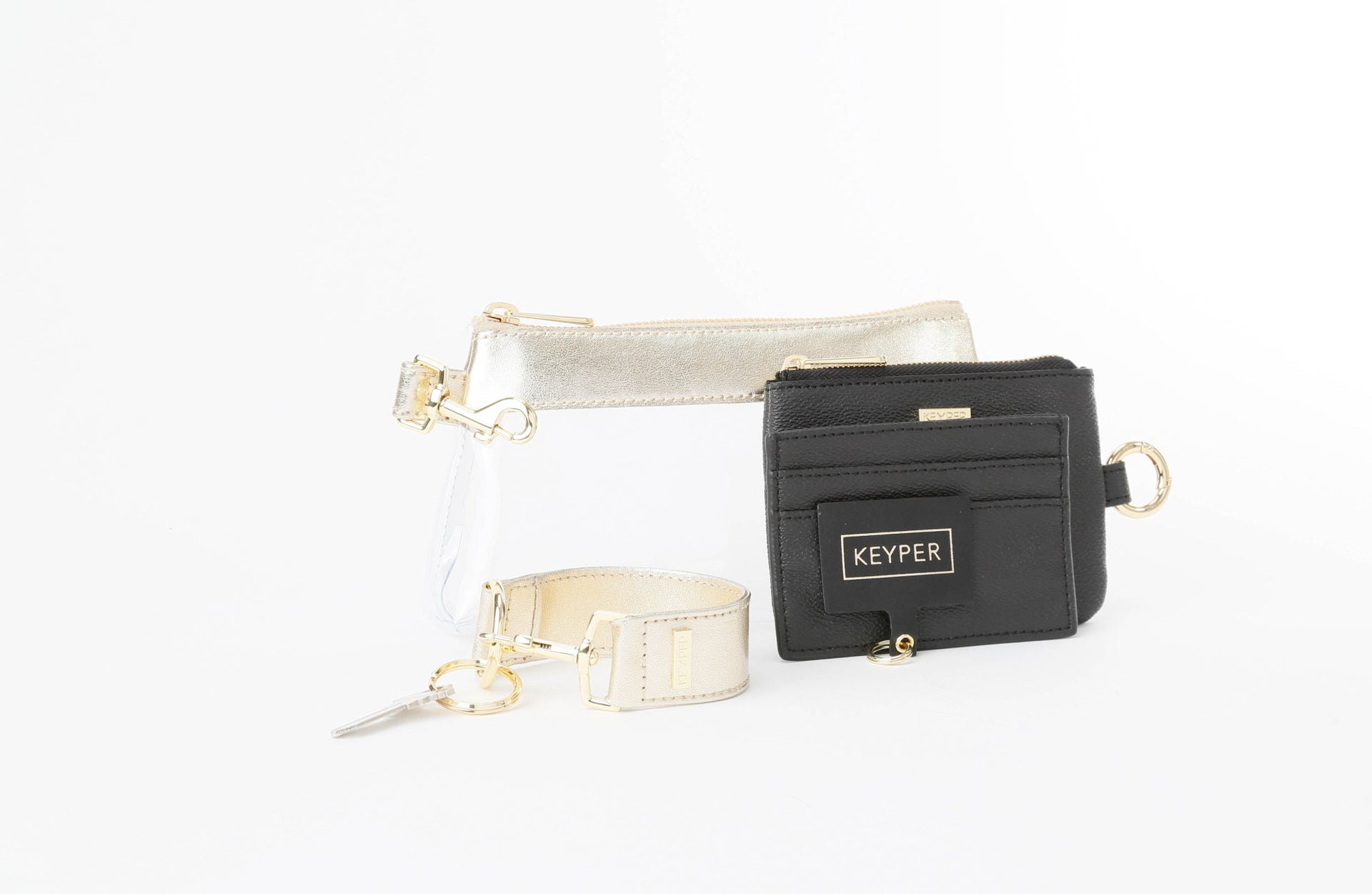 The Game Day VIP Bundle includes a KEYPER Key Ring Wristlet, Clear Bag, Credit Card Sleeve, On Call phone attachment and Wallet.