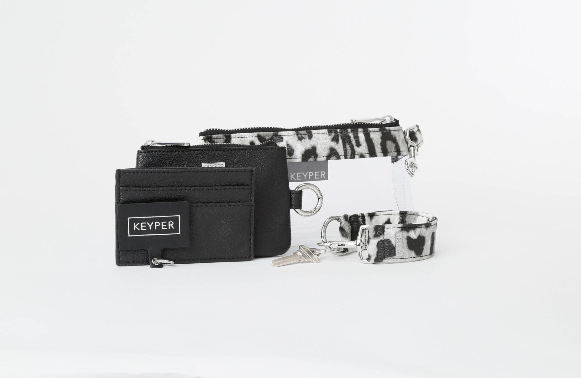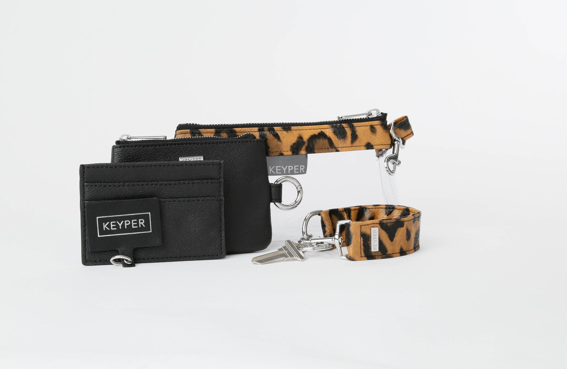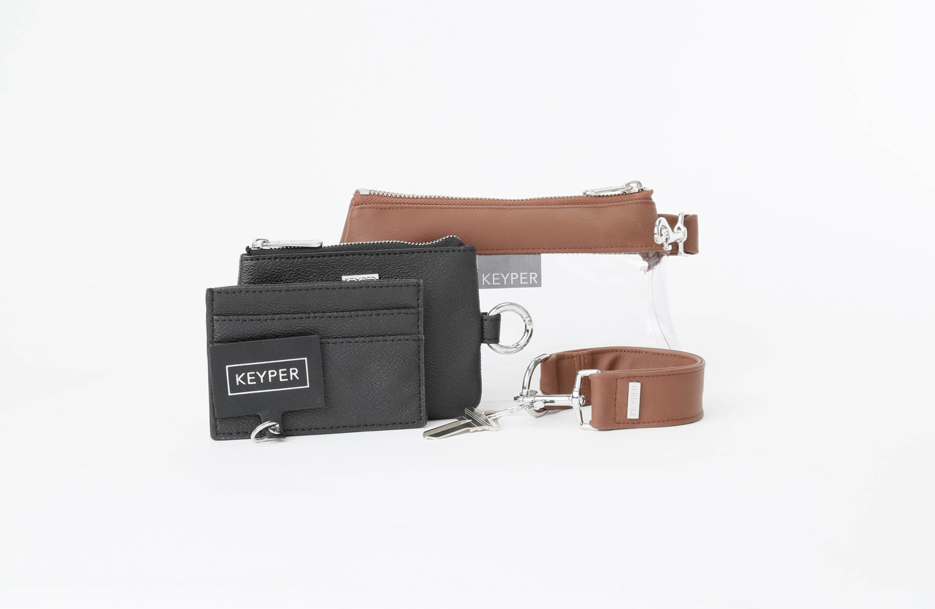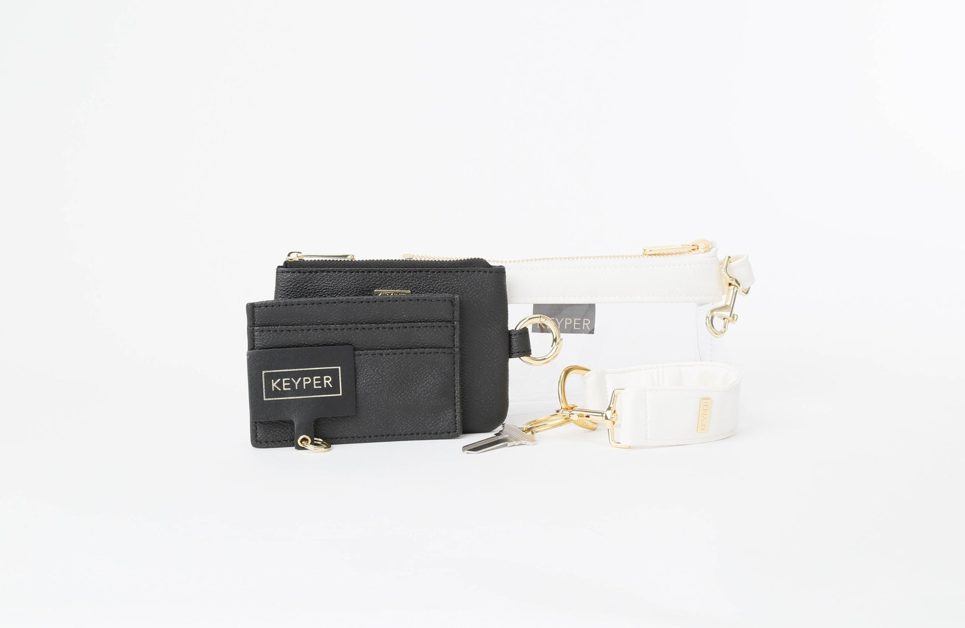 The Game Day VIP Bundle includes a KEYPER Key Ring Wristlet, Clear Bag, Credit Card Sleeve, On Call phone attachment and Wallet.