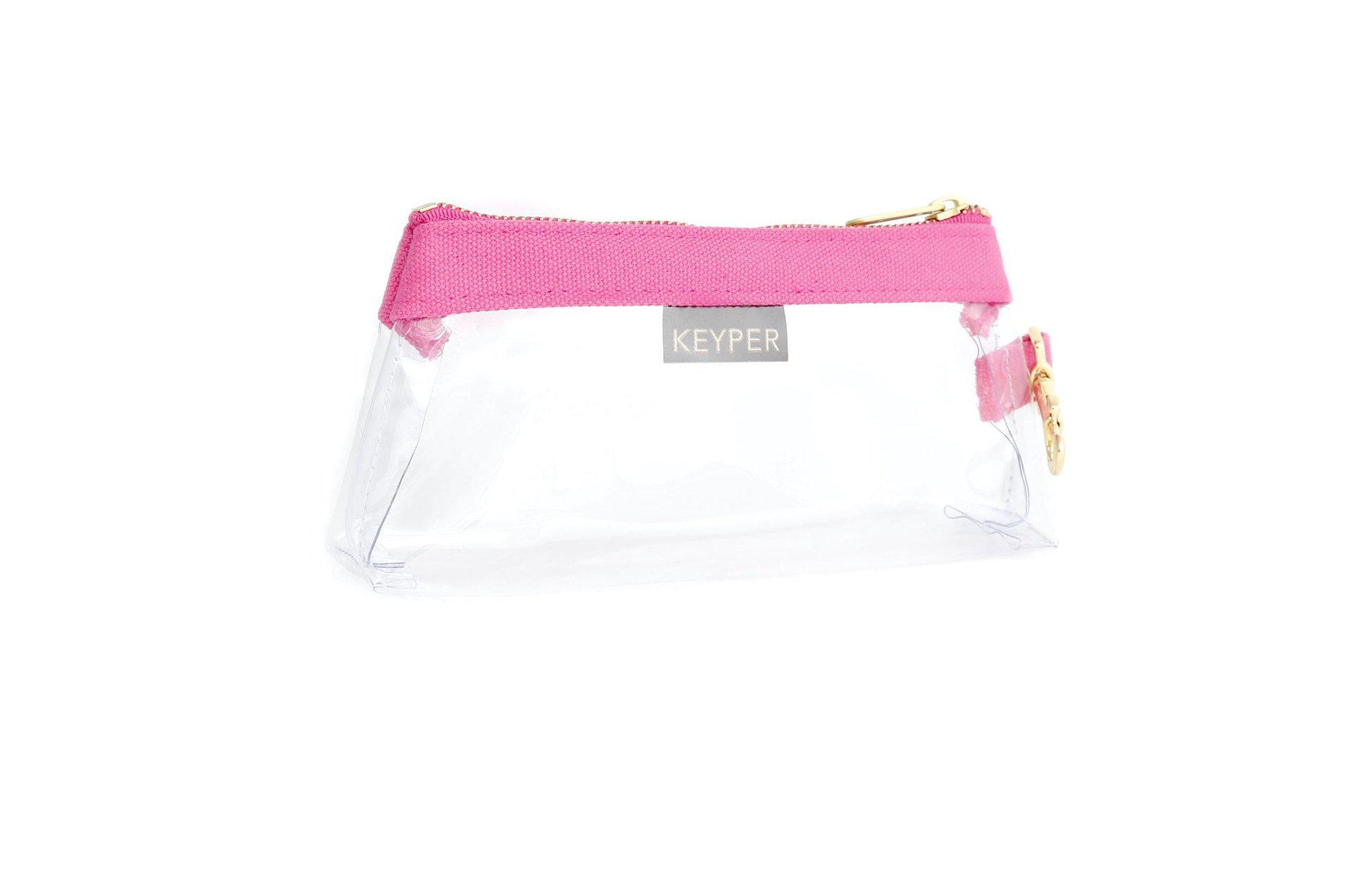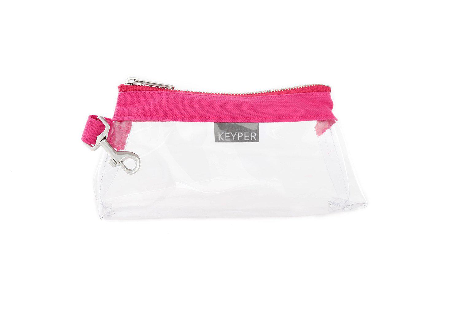 The Canvas Bag clips to the KEYPER® Key Ring Wristlet and can be used as a stand-alone clutch or purse organizer. The MINI Bag fits most phone sizes and has room for your cash, cards and lip gloss. The LUXE Bag and CLEAR Bag have an A-line design that allows extra room for all phone sizes, inhaler, EpiPen, sunglasses and more.  The CLEAR Bag is airport security approved and stadium approved for concerts and sporting events.