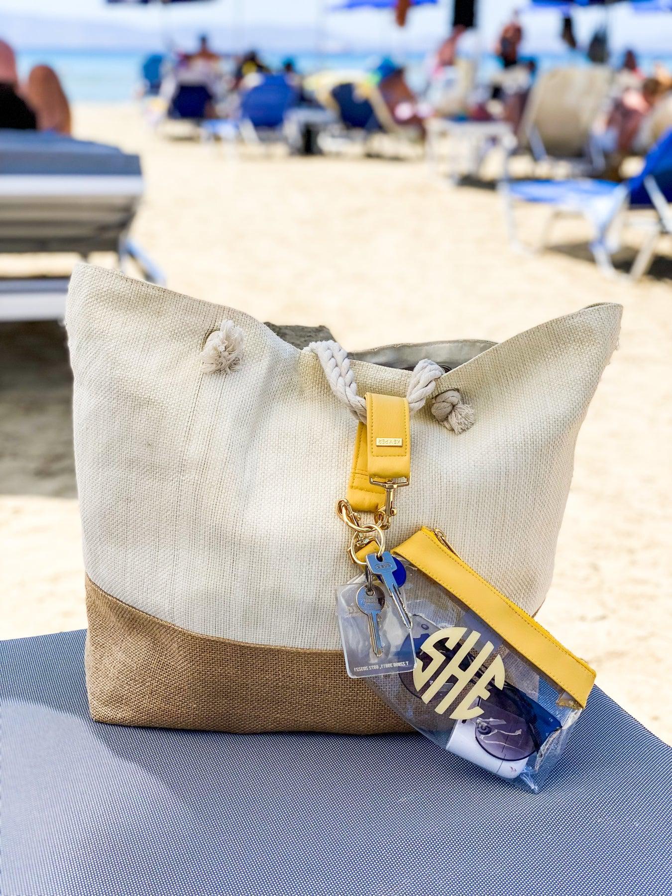 The Monogrammed CLEAR Bag is also great for pool days and beach trips! Check your phone without opening your bag with our clear, touchscreen material.