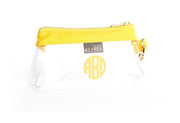 The Monogrammed CLEAR Bag comes trimmed in your choice of three durable fabrics. Personalize with block or script font.