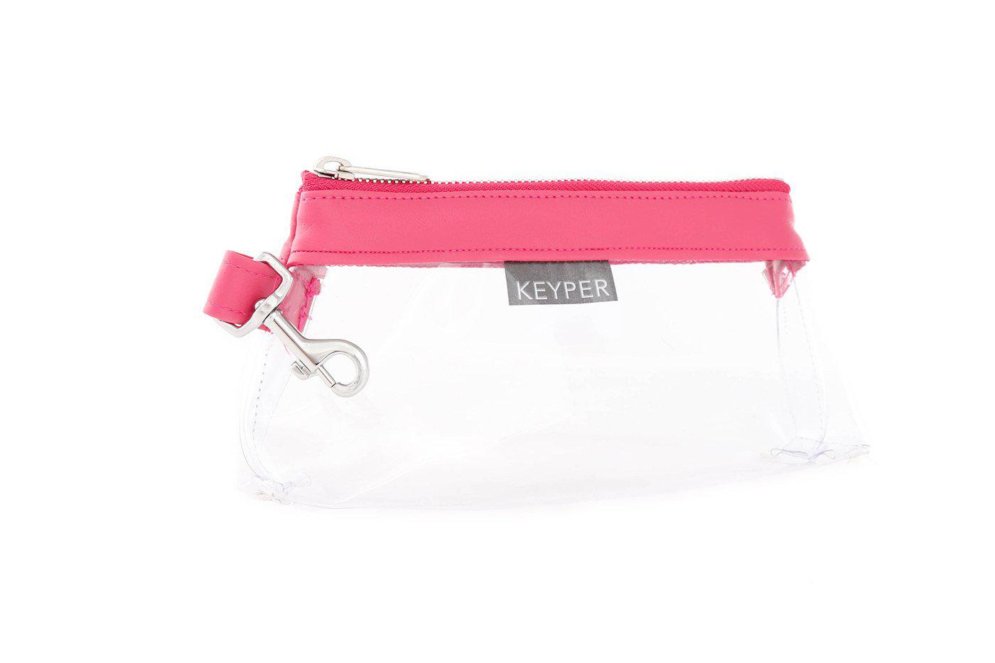 The Clear Bag with Vegan Leather Trim clips to the KEYPER® Key Ring Wristlet and can be used as a stand-alone clutch or purse organizer. The Clear Bag has an A-Line design that allows extra room for all phone sizes, inhaler, EpiPen, sunglasses and more.