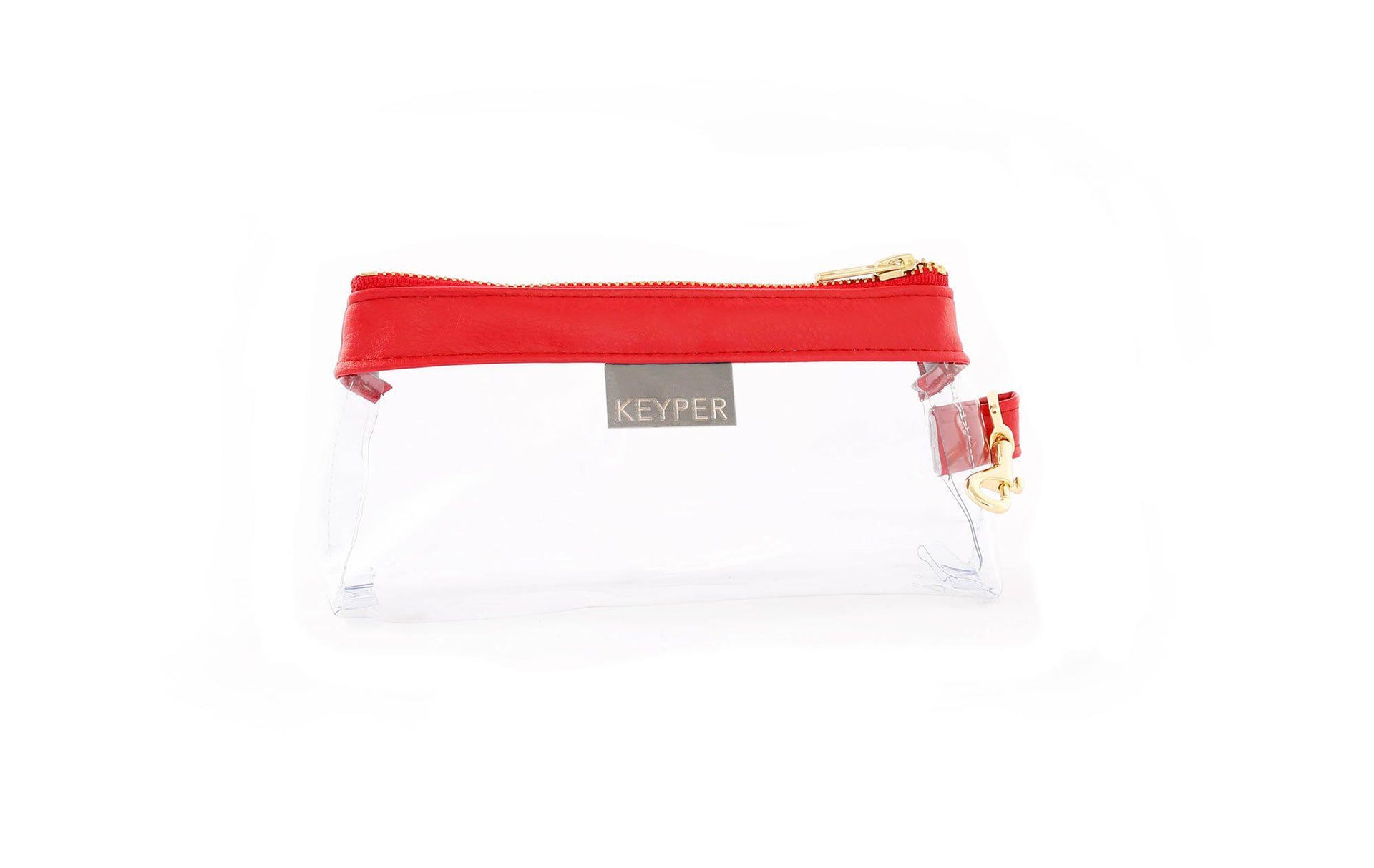 The Clear Bag with Vegan Leather Trim clips to the KEYPER® Key Ring Wristlet and can be used as a stand-alone clutch or purse organizer. The Clear Bag has an A-Line design that allows extra room for all phone sizes, inhaler, EpiPen, sunglasses and more.