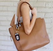 The best-rated Vegan KEYPER® Key Ring Wristlet helps you KEYPIT Together in style! Perfect to slip on your wrist for quick errands, brunch with girlfriends or running the kids to activities. You'll never dig for your keys again with KEYPER® secured to your big bag handle. Our PATENTED DESIGN can hold up to 20 lb.  Secure your heavy bag to your stroller, shopping cart, chair, luggage and more! Fashion + Function + Security = KEYPER®