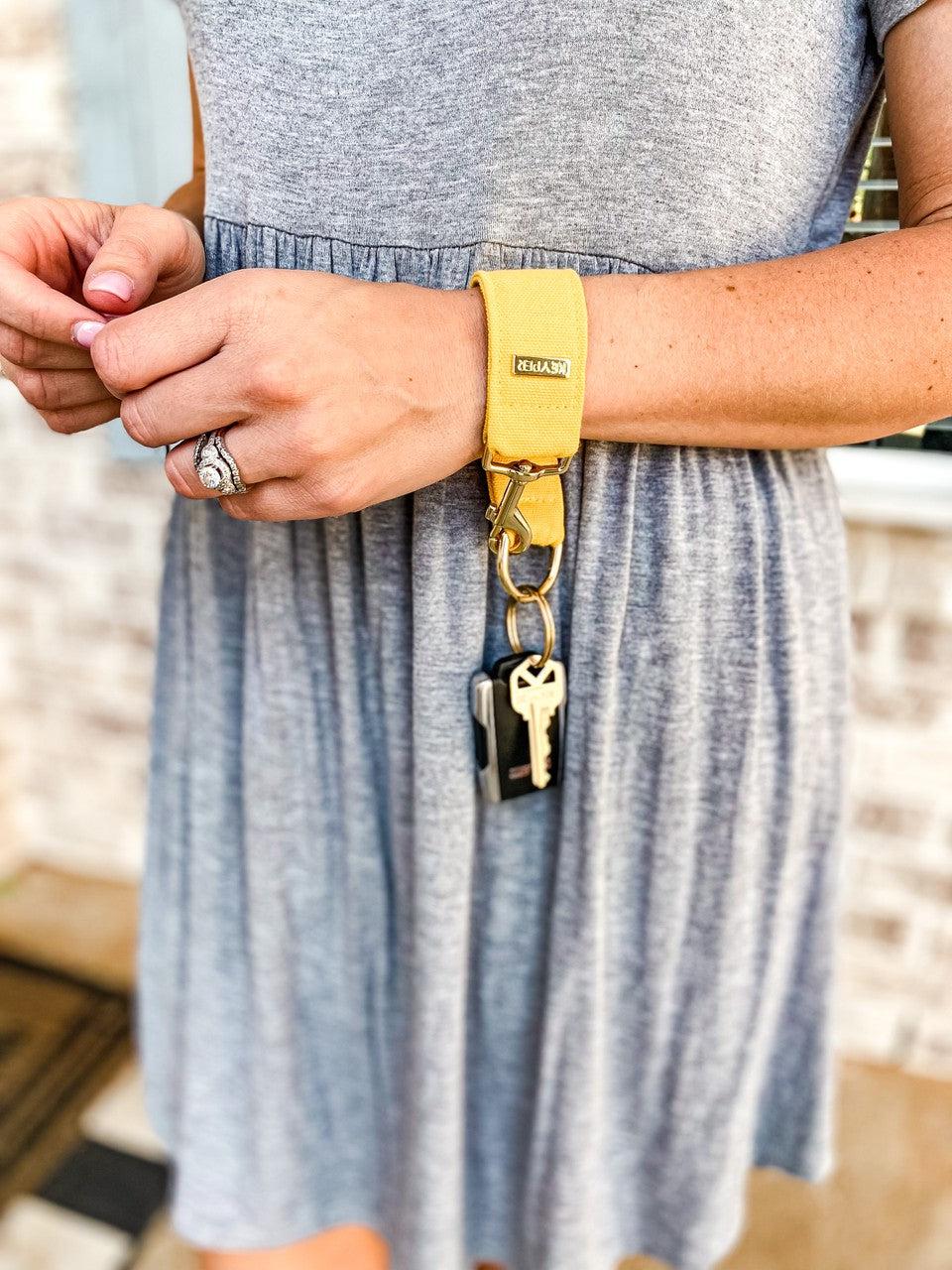 The Canvas KEYPER® Key Ring Wristlet helps you KEYPIT Together in style! Perfect to slip on your wrist for quick errands, brunch with girlfriends or running the kids to activities. You'll never dig for your keys again with KEYPER® secured to your big bag handle. Our PATENTED DESIGN can hold up to 20 lb.  Secure your heavy bag to your stroller, shopping cart, chair, luggage and more! Fashion + Function + Security = KEYPER®