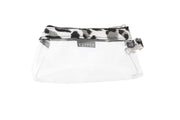• CLEAR Bag: 4" Tall x 7" Wide at Opening (8.5" Wide at Bottom) x 2" Deep