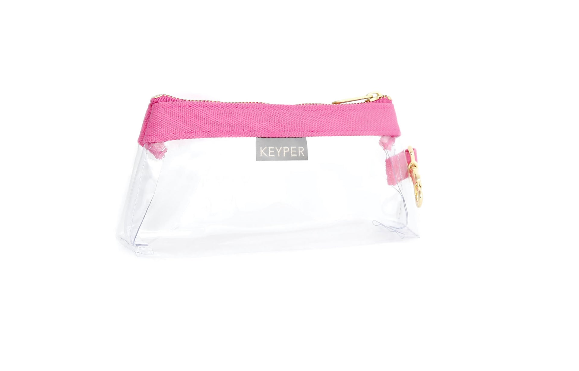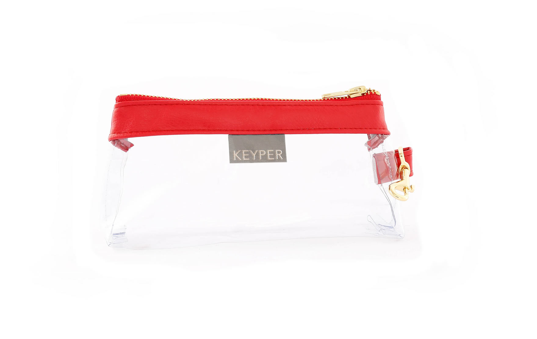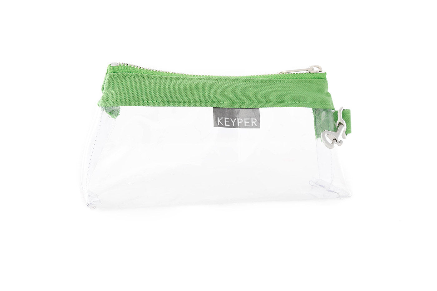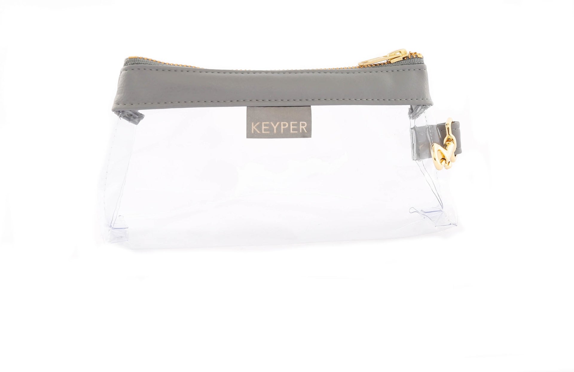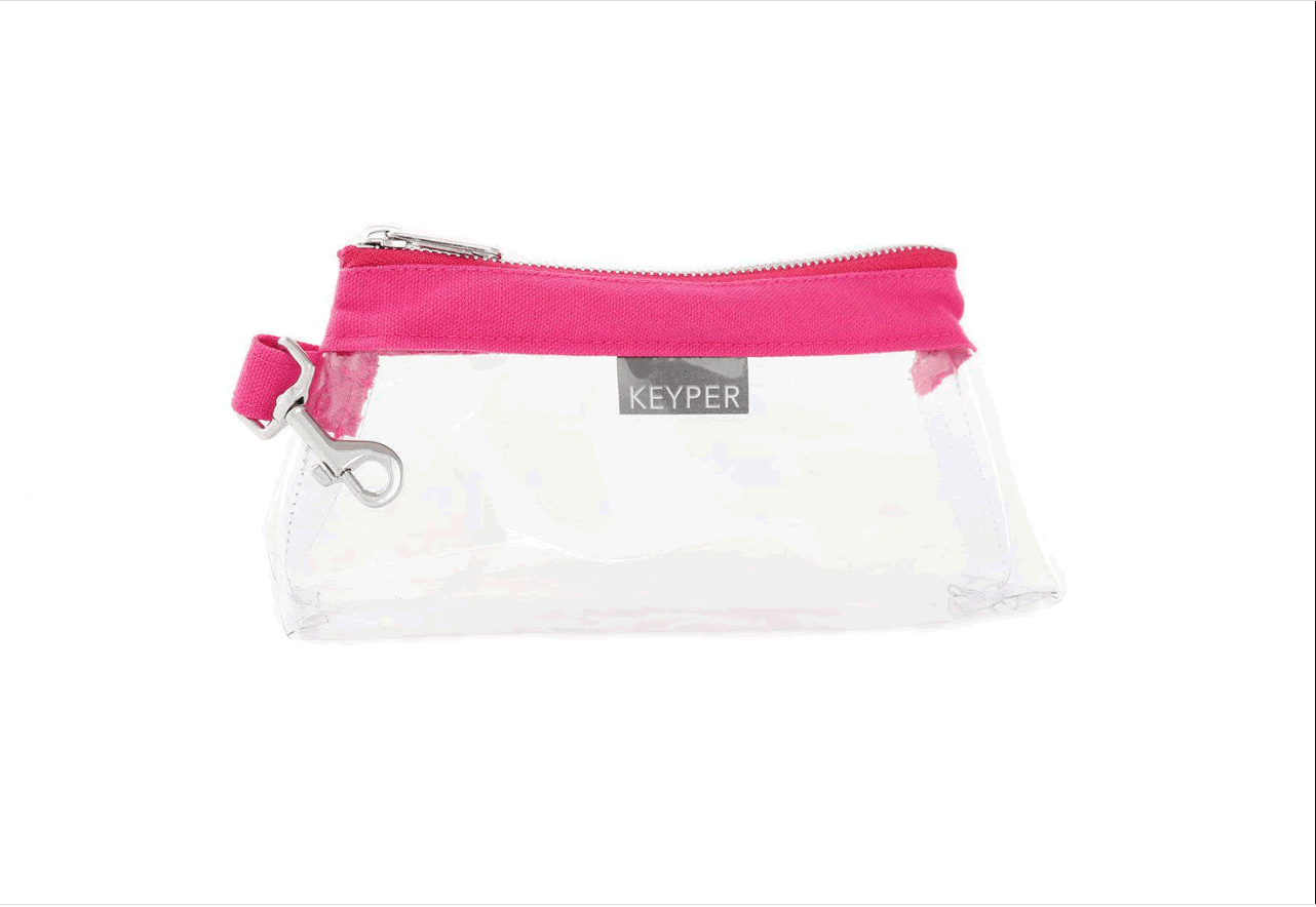 The Clear Bag clips to the KEYPER® Key Ring Wristlet and can be used as a stand-alone clutch or purse organizer. The Clear Bag has an A-Line design that allows extra room for all phone sizes, inhaler, EpiPen, sunglasses and more.