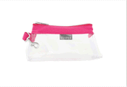 • CLEAR Bag: 4" Tall x 7" Wide at Opening (8.5" Wide at Bottom) x 2" Deep