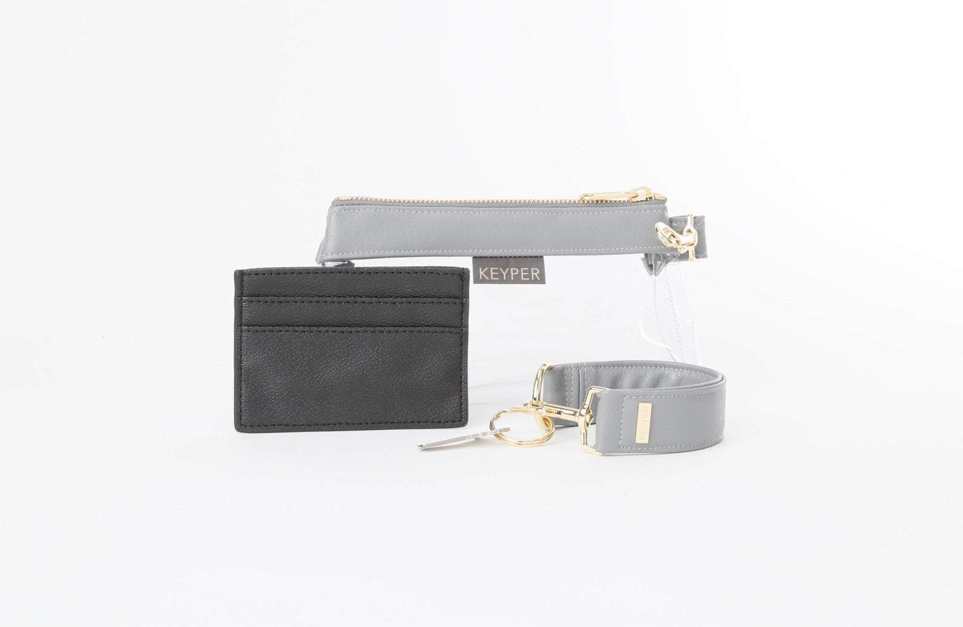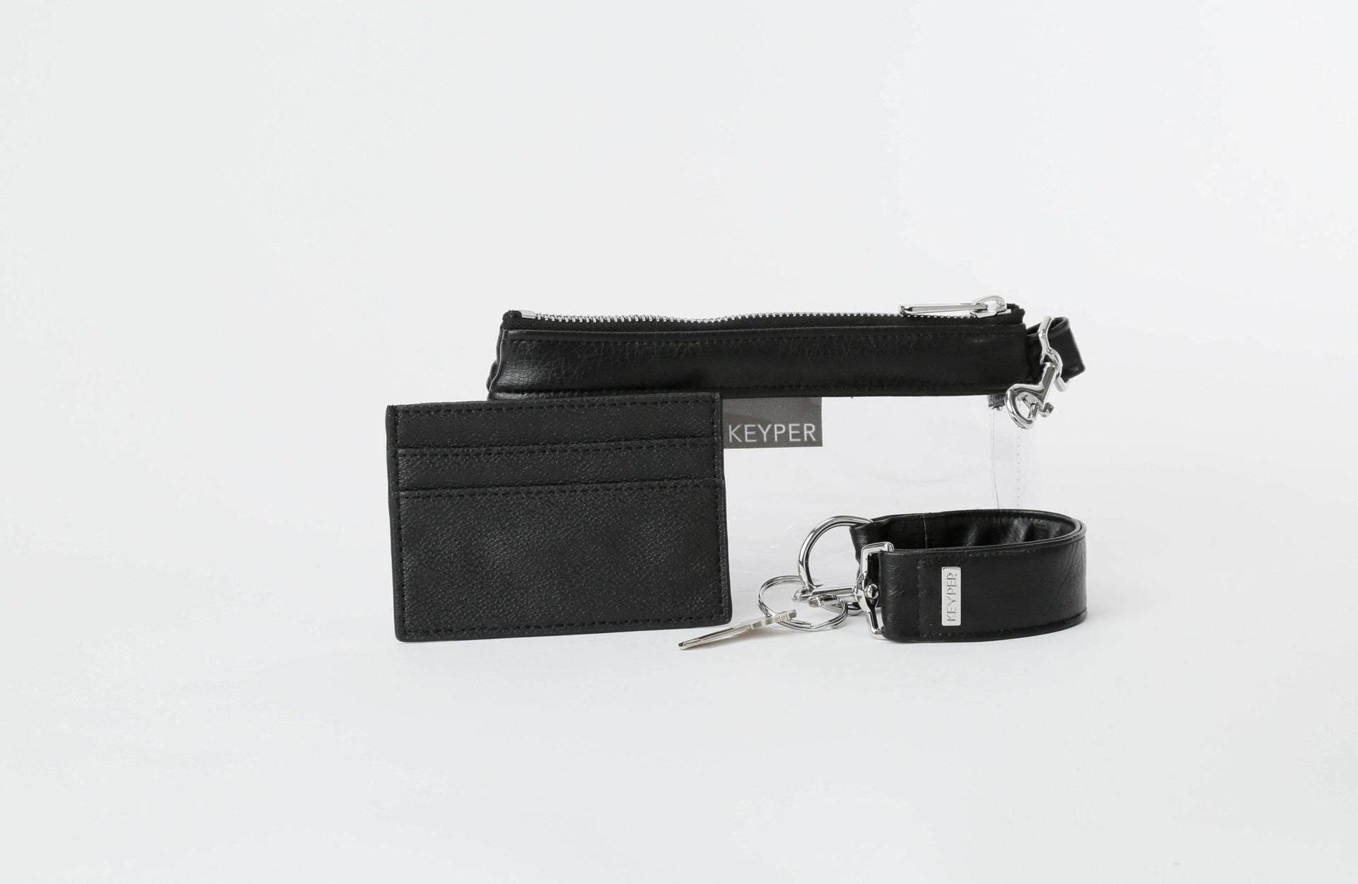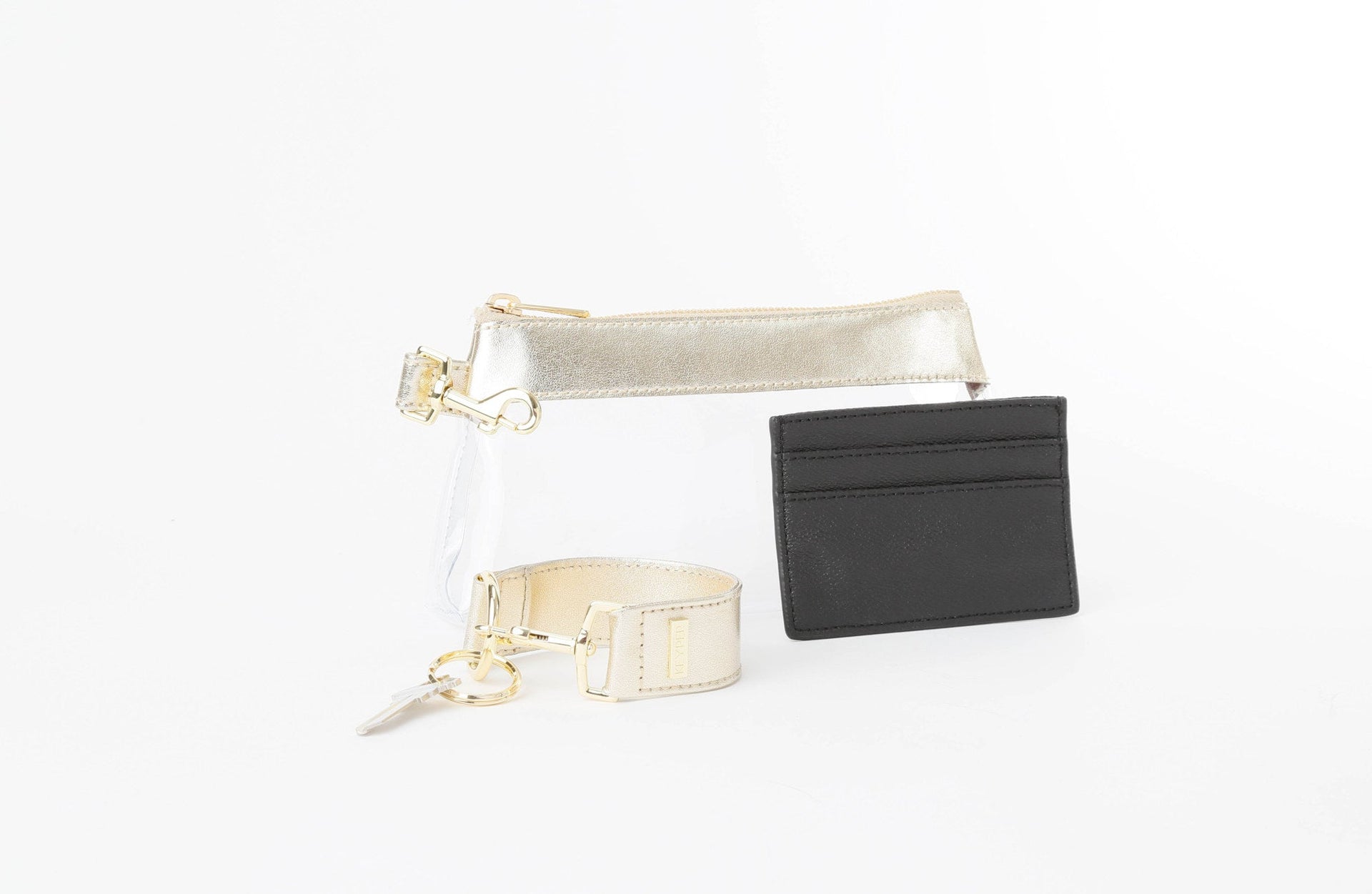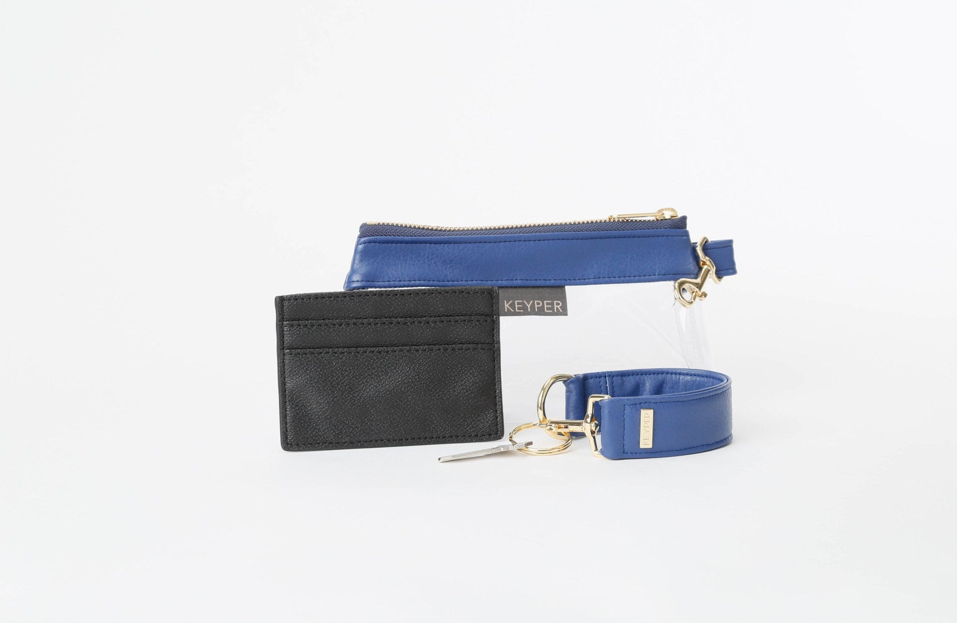 The Stadium Trio includes a KEYPER Key Ring Wristlet, Clear Bag and Credit Card Sleeve.