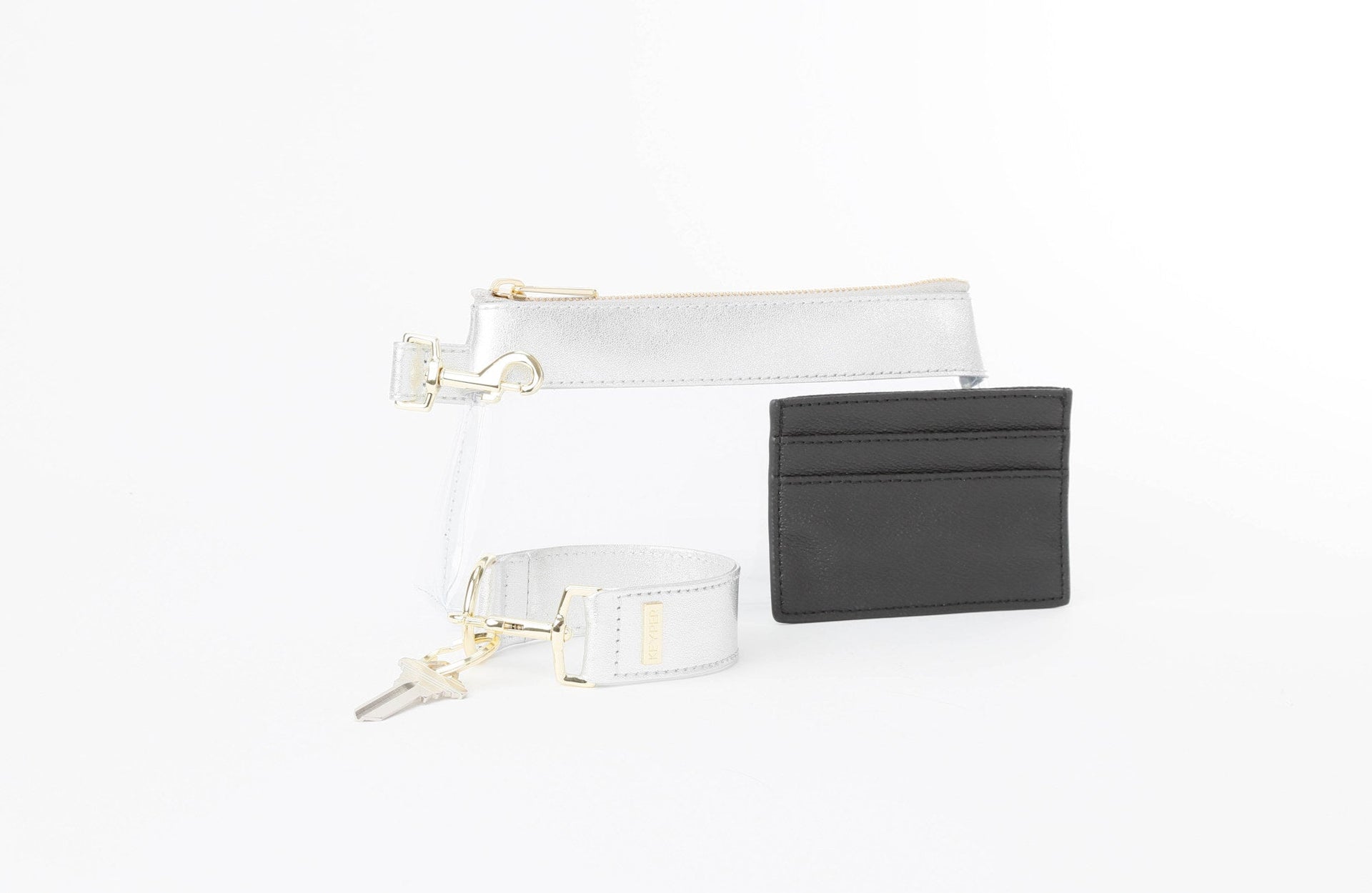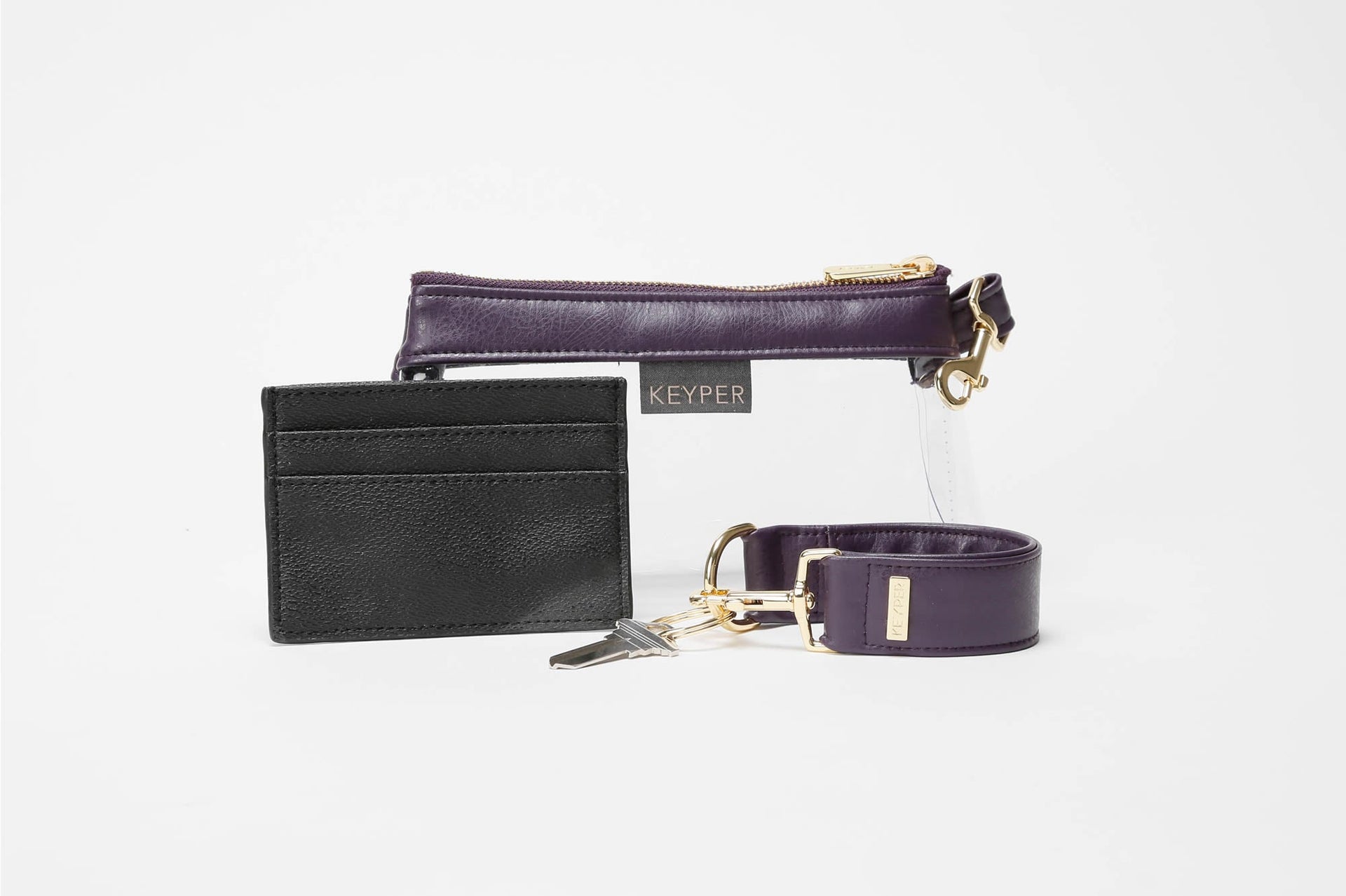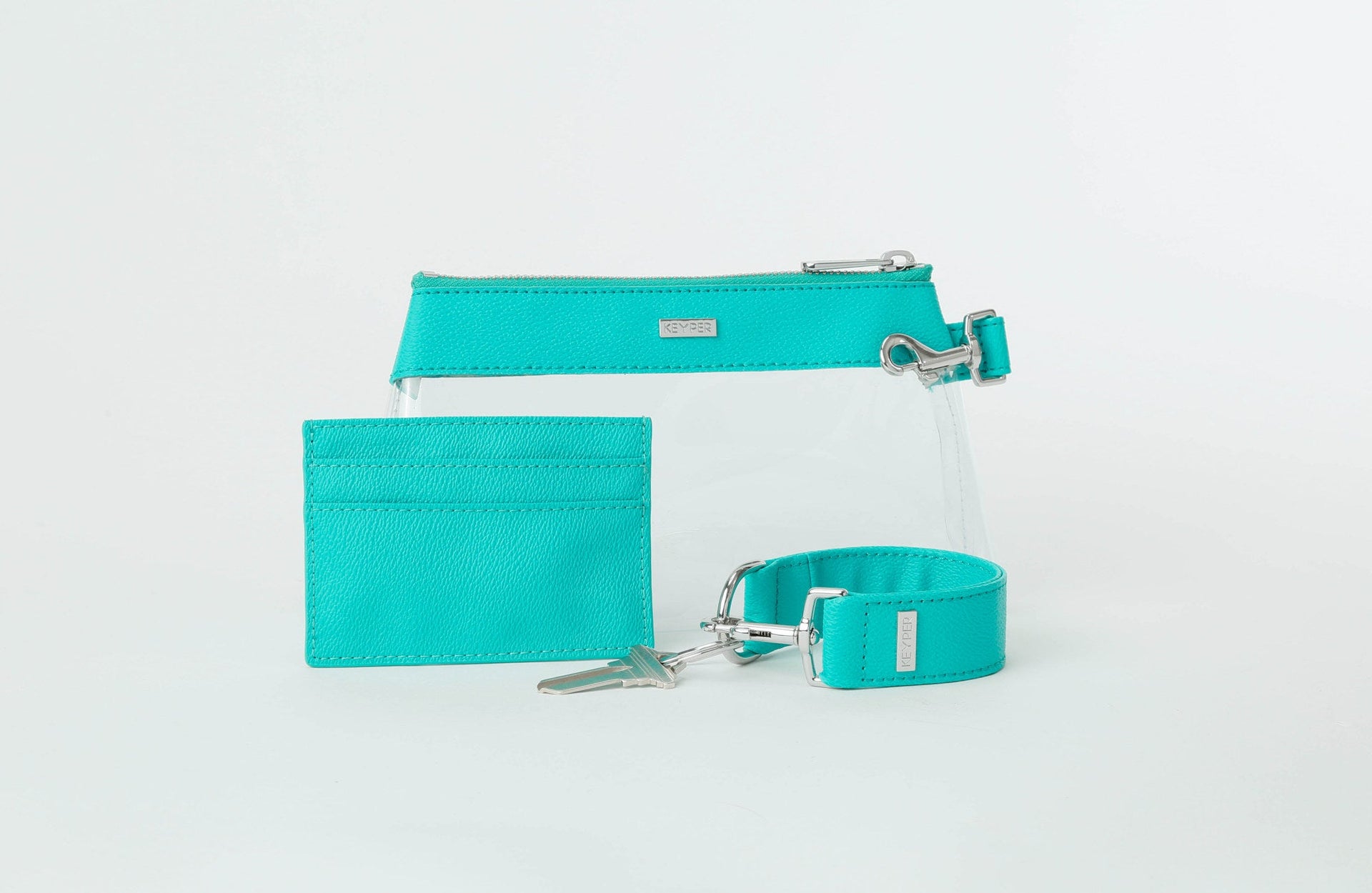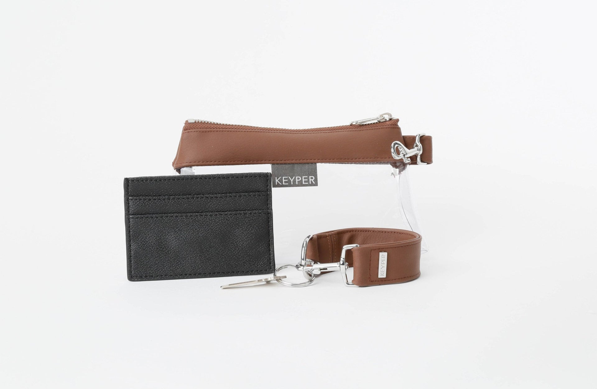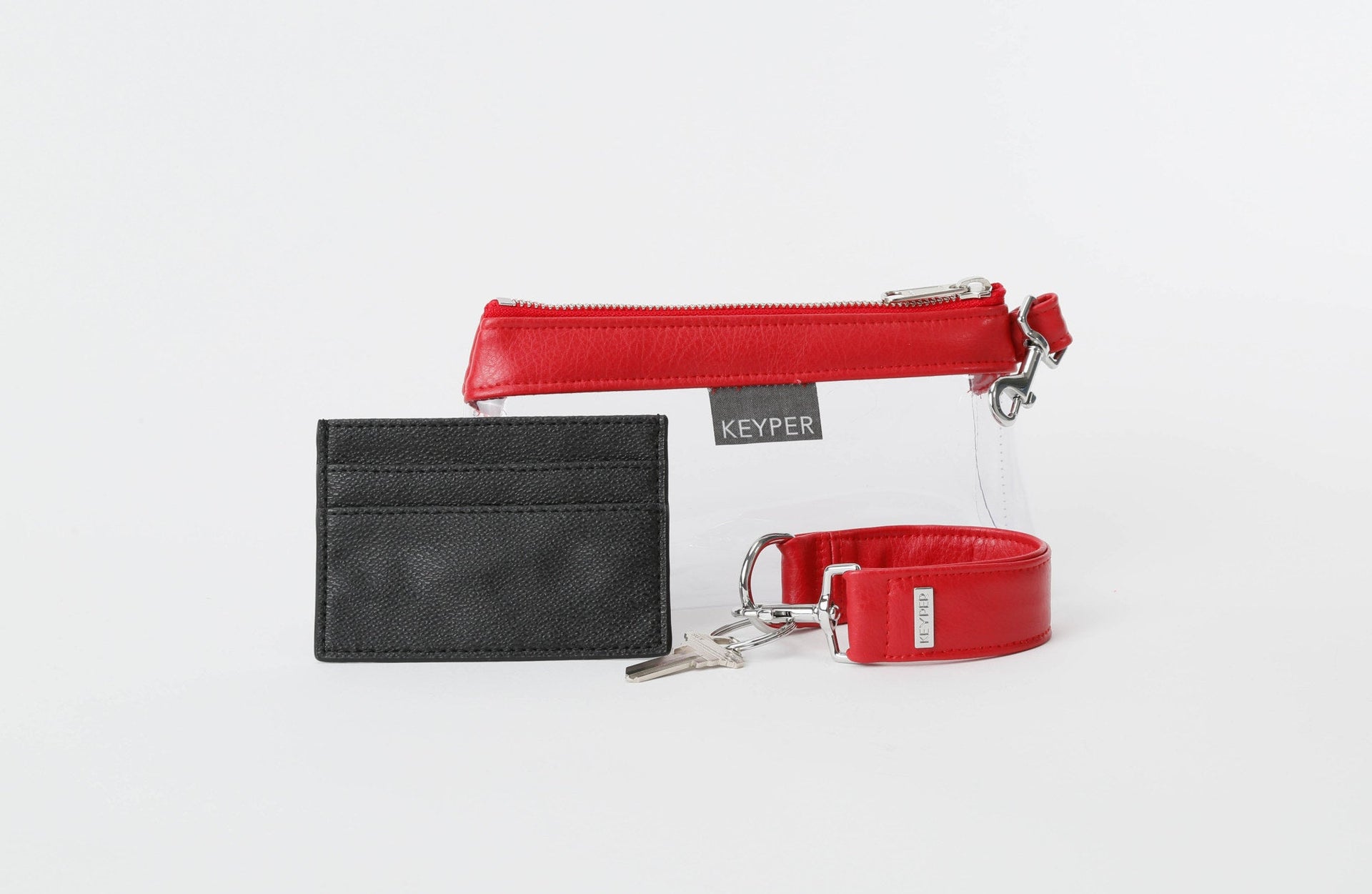 The Stadium Trio includes a KEYPER Key Ring Wristlet, Clear Bag and Credit Card Sleeve.